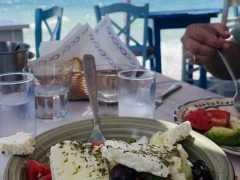 Lunch offers a revitalizing vegetarian meal, blending the richness of the Greek diet with the simplicity of yogic cuisine.